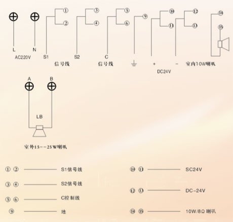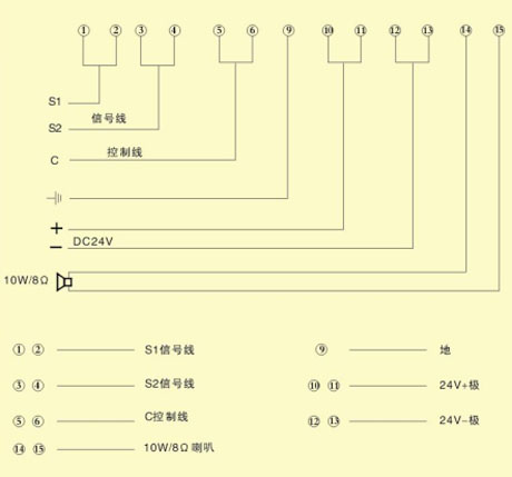 XY-2分機(jī)接線端子示意圖: