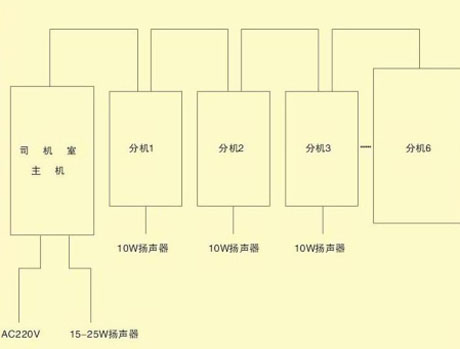 XY―2型系列產(chǎn)品廣泛應(yīng)用于冶金、電力等行業(yè)的有線對講系統(tǒng),在天車上其主站安裝在司機(jī)室,分站可以分布在電力室內(nèi)、高壓室、大小車上和天車登機(jī)門。該系統(tǒng)由若干臺廣播對講機(jī)組成一個機(jī)內(nèi)通訊網(wǎng)絡(luò),各個有線廣播站內(nèi)置揚聲器和送受話器,任何一個廣播站喊話,其余話站均能接通廣播。可以使生產(chǎn)人員方便地與天車操作人員取得聯(lián)系。在各個站操作時無需撥號,可以方便的實現(xiàn)一對一講話,各話站并列接線,用戶可根據(jù)工藝要求任意擴(kuò)充,每個話站都是一個獨特的系統(tǒng),任一臺損壞,不會影響其余分站正常工作。在起重設(shè)備上可以方便地實現(xiàn)上下車聯(lián)系,機(jī)內(nèi)操作人員相互通訊。接線原理框圖參見附錄。