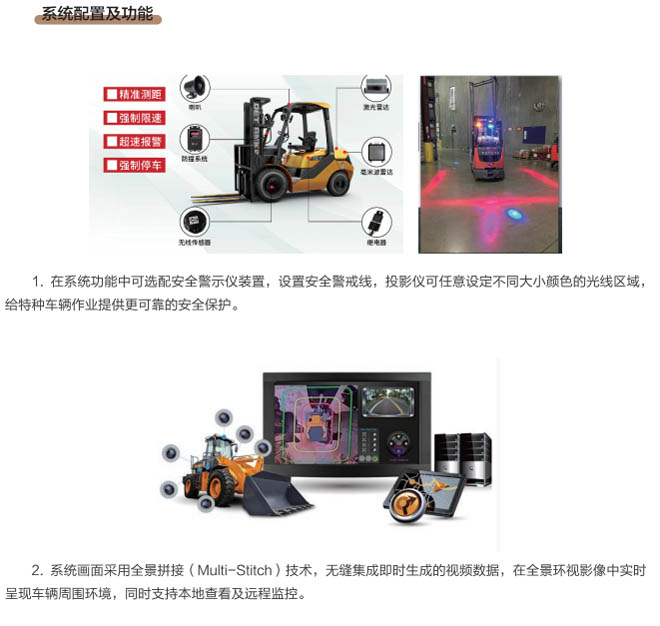 1.基于360°全景環(huán)視監(jiān)控技術(shù),任意設(shè)定警戒區(qū)域、危險(xiǎn)區(qū)域大小及形狀,無死角保護(hù)車輛設(shè)備駕駛作業(yè)安全,最大偵測范圍4-5米,防撞距離掃描達(dá)20米以上,安裝投影儀可設(shè)置警戒線,投影光線在地面形成一個(gè)安全范圍